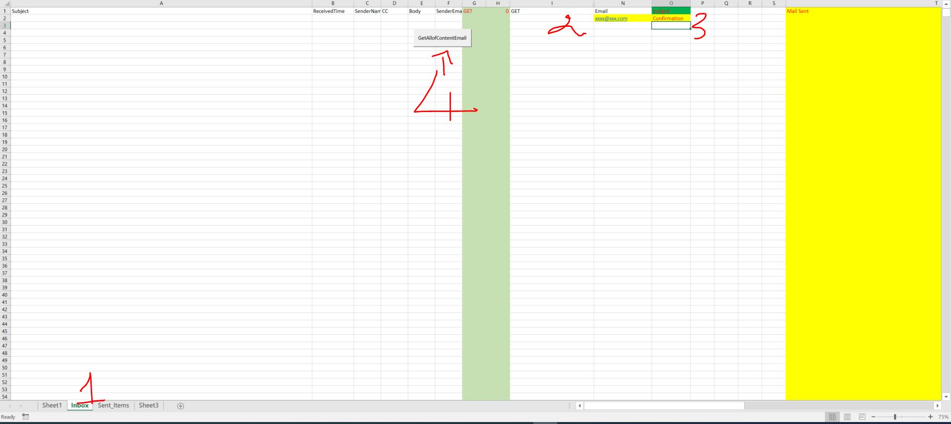 Step 1: With sheet name is Inbox . Please input emaill address into range N2