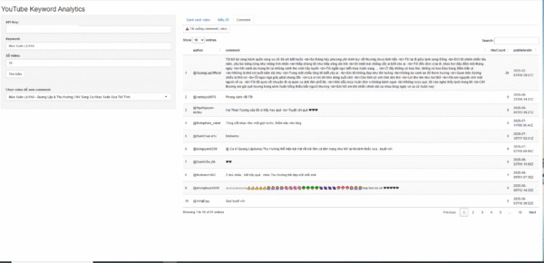 - Xem toàn bộ bình luận cho từng video (View all comments for each video)